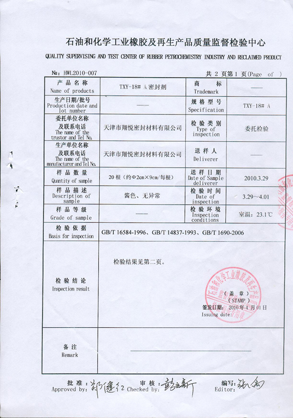 天津市翔悅密封材料股份有限公司 版權所有 備案號: